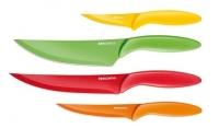 Nože Tescoma PRESTO se vyznačují stejnými vlastnostmi jako výše zmíněná řada SONIC. Jediný rozdíl je ve tvaru a barevném provedení rukojeti. Řada PRESTO je navíc doplněna o nůž vykrajovací, o nůž na parmazán a o sadu mini nožů. K nožům PRESTO si můžete dokoupit i servírovací vidličku, krájecí kolébku, ocílku, brousek či různé druhy nůžek.